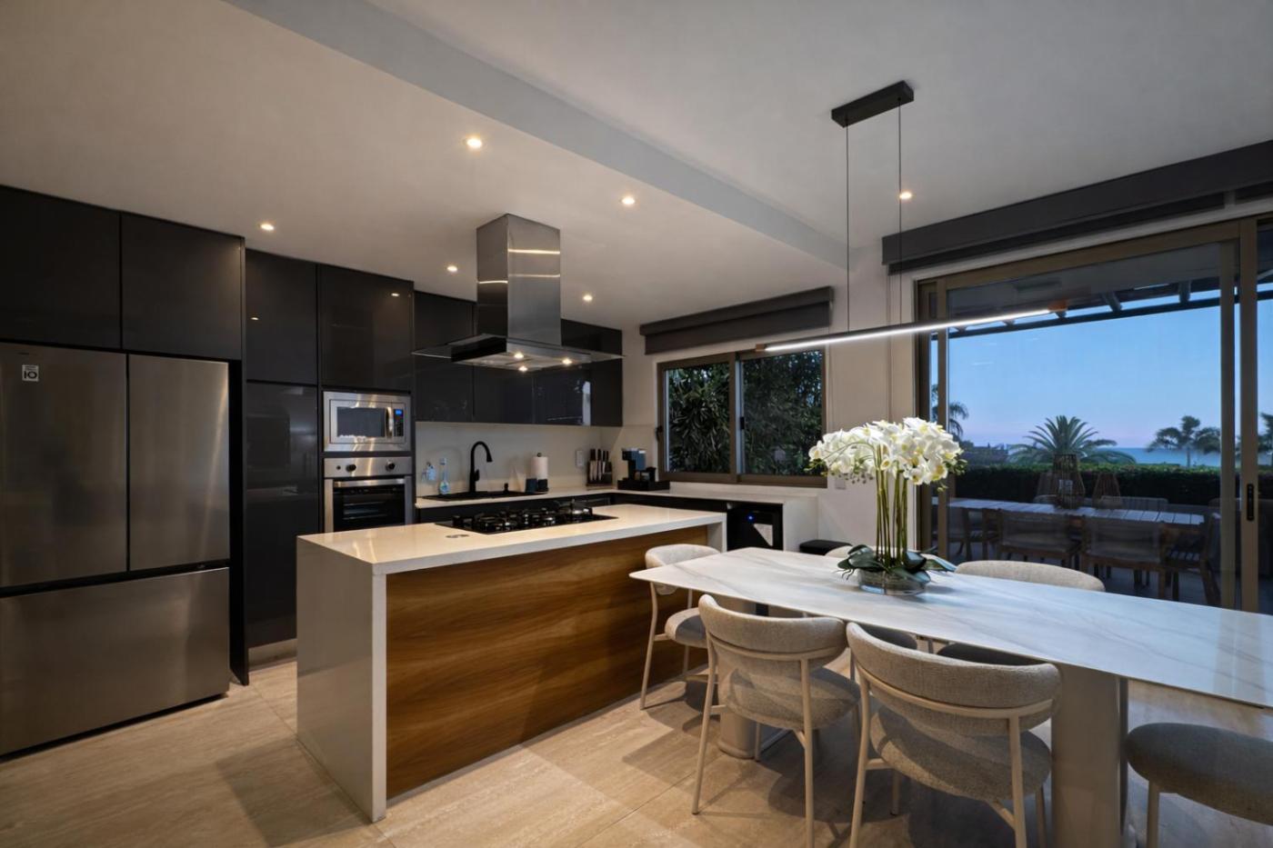 The villa with a terrace and pool views features 3 bedrooms, a living room, a flat-screen TV, an equipped kitchen with a dishwasher and a toaster, and 4 bathrooms with a hot tub. Towels and bed linen are featured in the villa. For added privacy, the accommodation has a private entrance and is protected by full-day security.