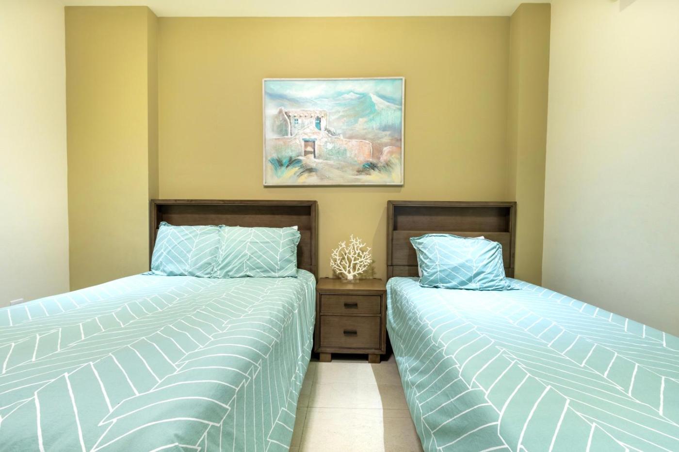 Three-Bedroom Apartment. This apartment features a pool with a view. In the well-equipped kitchen, guests will find a stovetop, a refrigerator, a dishwasher and kitchenware. The spacious air-conditioned apartment features a flat-screen TV with streaming services, a washing machine, a private entrance, a tea and coffee maker as well as sea views. The unit has 4 beds.