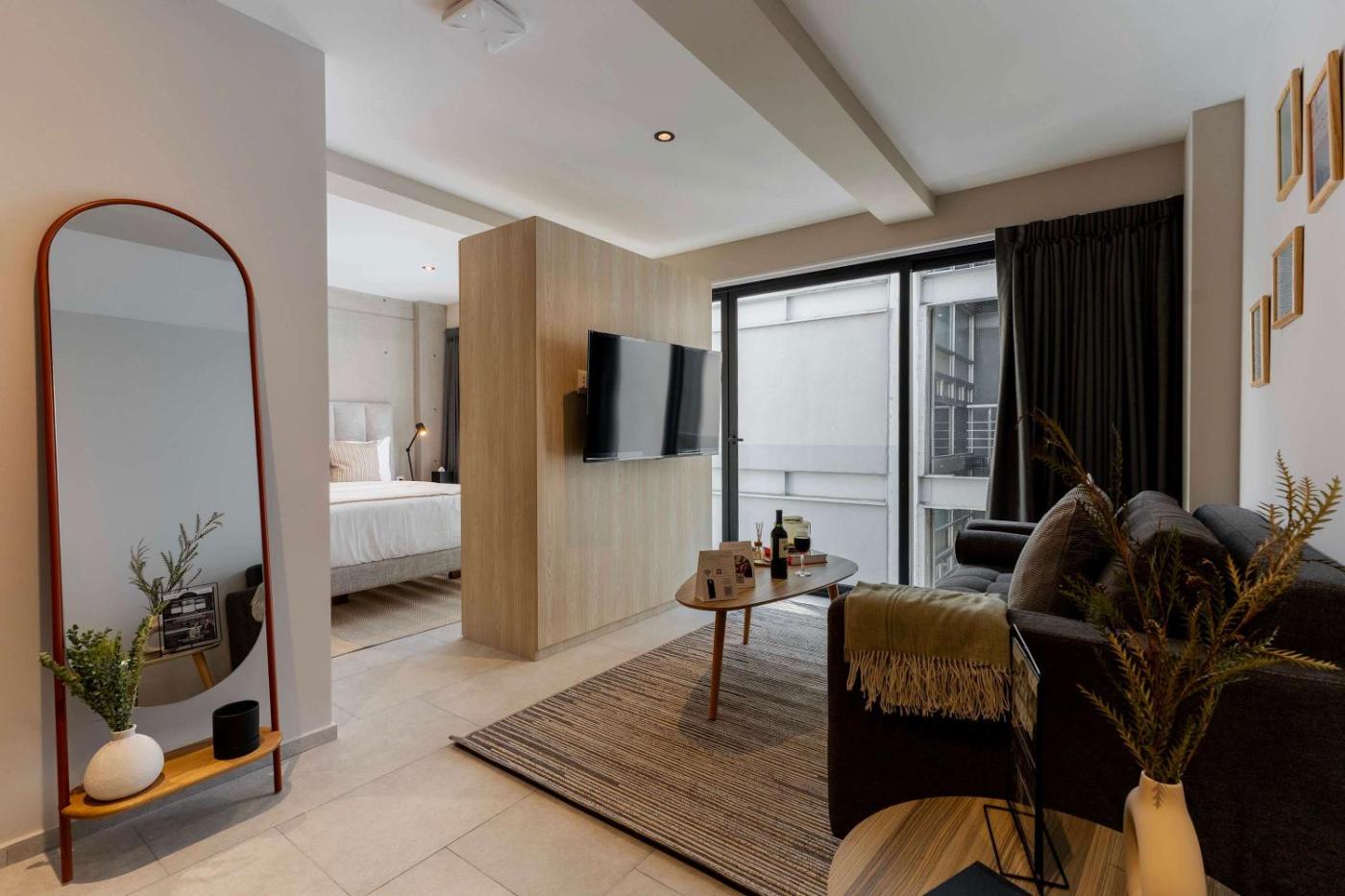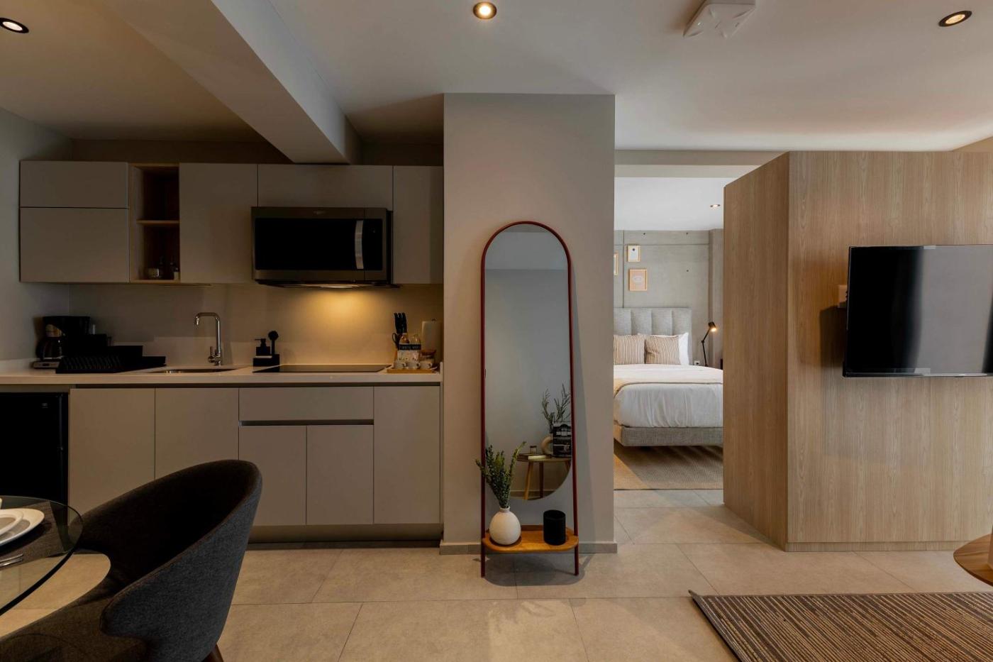 Apartment. Guests can make meals in the kitchen that is fitted with a stovetop, a refrigerator, kitchenware and a microwave. The air-conditioned apartment offers a TV with streaming services, a private entrance, a tea and coffee maker, a wardrobe as well as city views. The unit offers 1 bed.