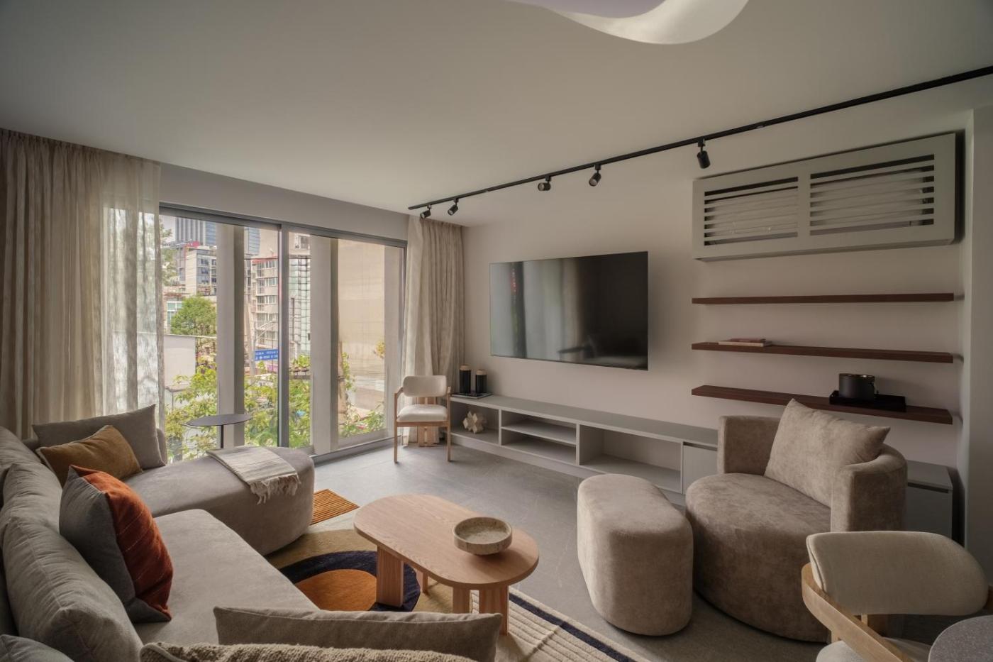 King Studio. The studio has a private bathroom, air conditioning, a private entrance, as well as a seating area with a flat-screen TV. Meals can be prepared in the kitchen, which features a stovetop, kitchenware, a microwave and a toaster. Boasting a balcony, this studio also features soundproof walls, a tea and coffee maker and a TV. The unit has 1 bed.