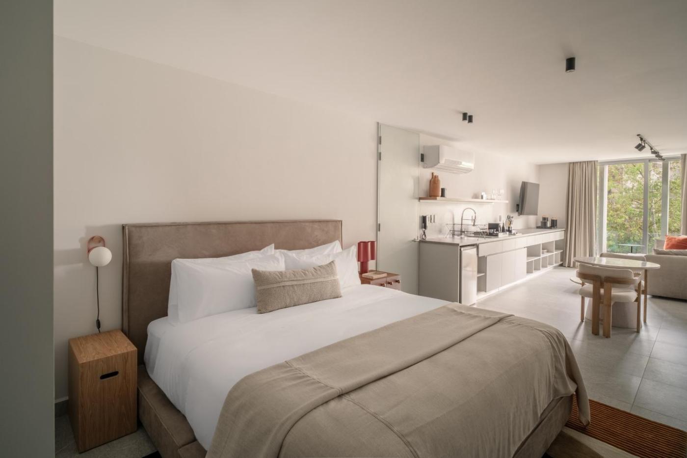 Deluxe King Studio. The studio has a private bathroom, air conditioning, a private entrance, as well as a seating area with a flat-screen TV. The well-equipped kitchen features a stovetop, kitchenware, a microwave and a toaster. Boasting a balcony, this studio also features soundproof walls, a tea and coffee maker and a TV. The unit has 1 bed. ;