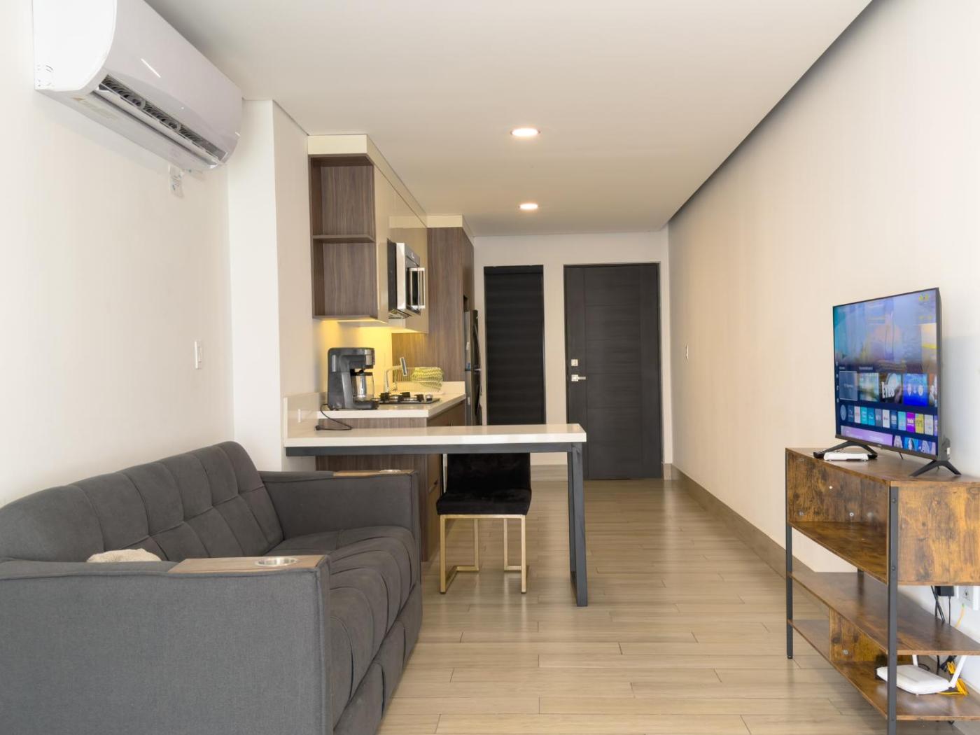 Situated in Monterrey, 6.3 km from Macroplaza, Dpto cerca de UANL, Ternium y el metro - Asadores provides accommodation with a public bath. The air-conditioned accommodation is 6.3 km from La Granja, and guests can benefit from private parking available on site and free WiFi. The accommodation features a lift and full-day security for guests.