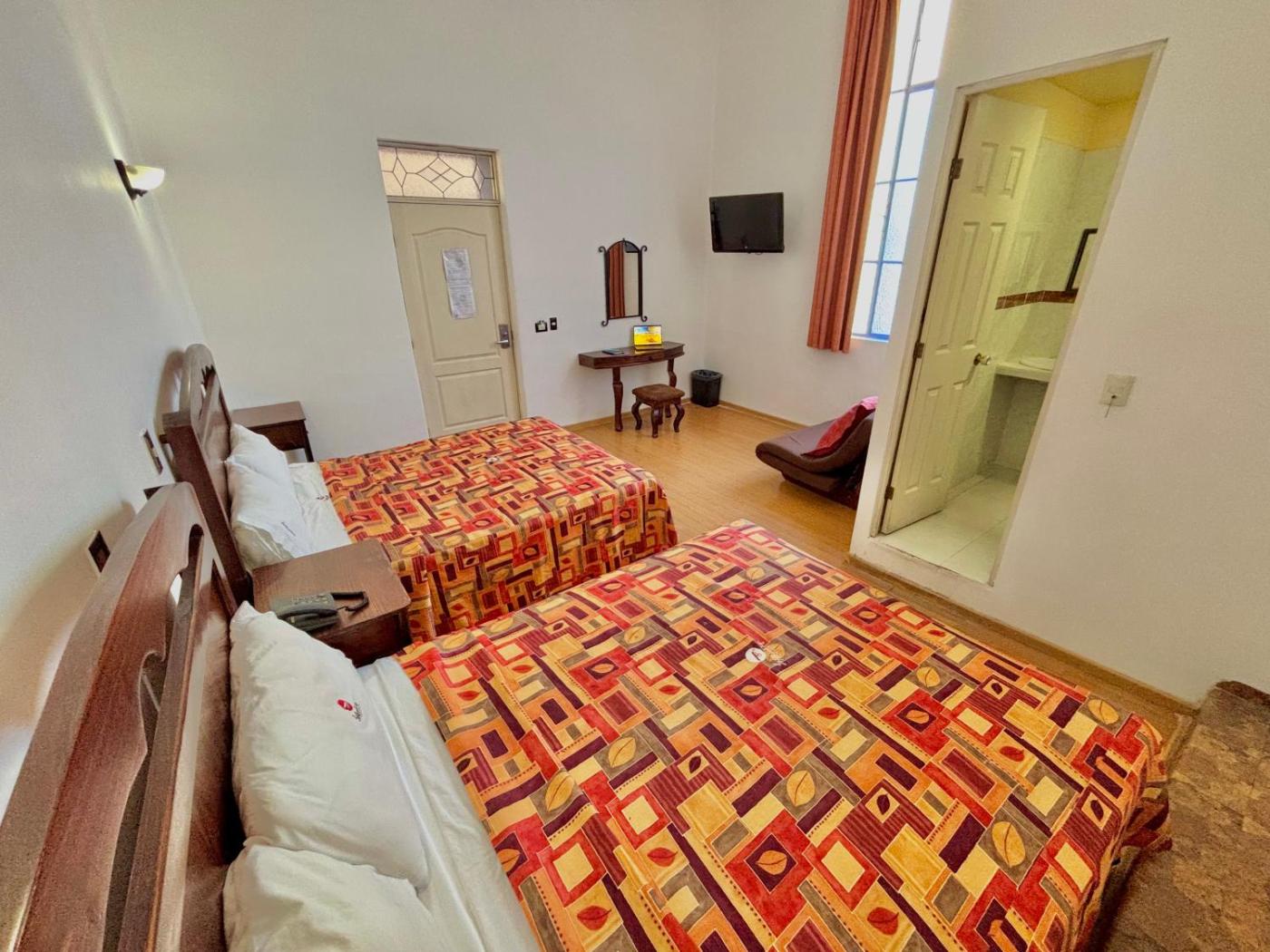 Twin Room. This comfortable room has 2 double beds and a colonial-style ceiling. The room has rustic-wood furniture, ceramic and wooden floors. It comes with a private bathroom. ;