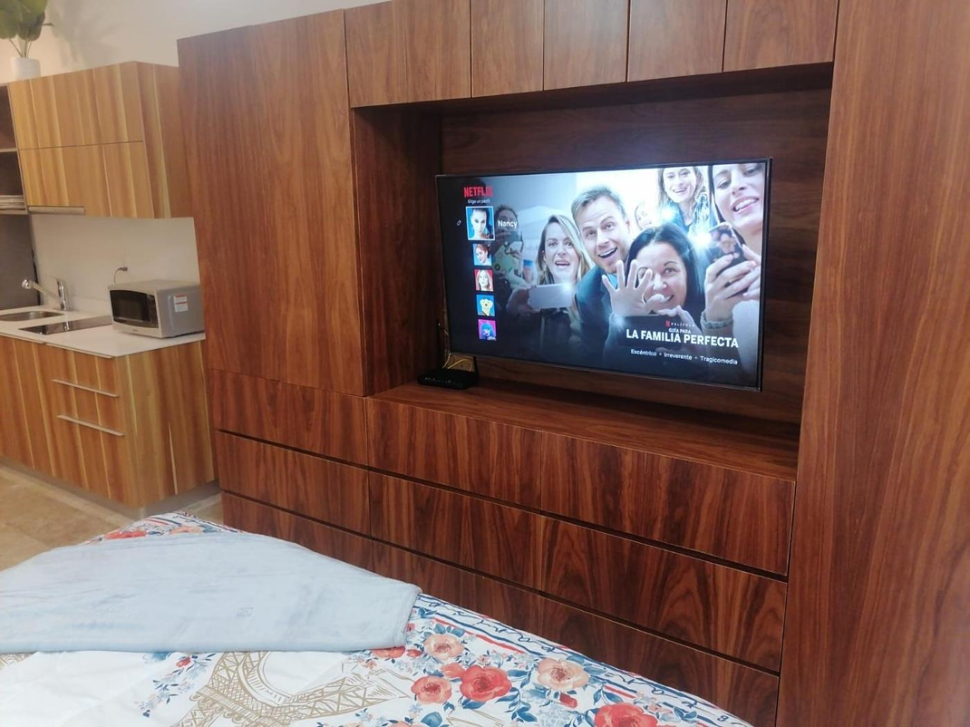 One-Bedroom Apartment. The air-conditioned apartment features 1 bedroom, 1 bathroom and a kitchen. The apartments kitchen is available for cooking and storing food. This apartment provides a flat-screen TV. The unit offers 1 bed.